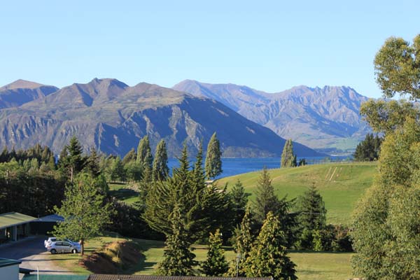 | Lake Wanaka a l'arribar al poble amb el Mt. Aspiring al fons |